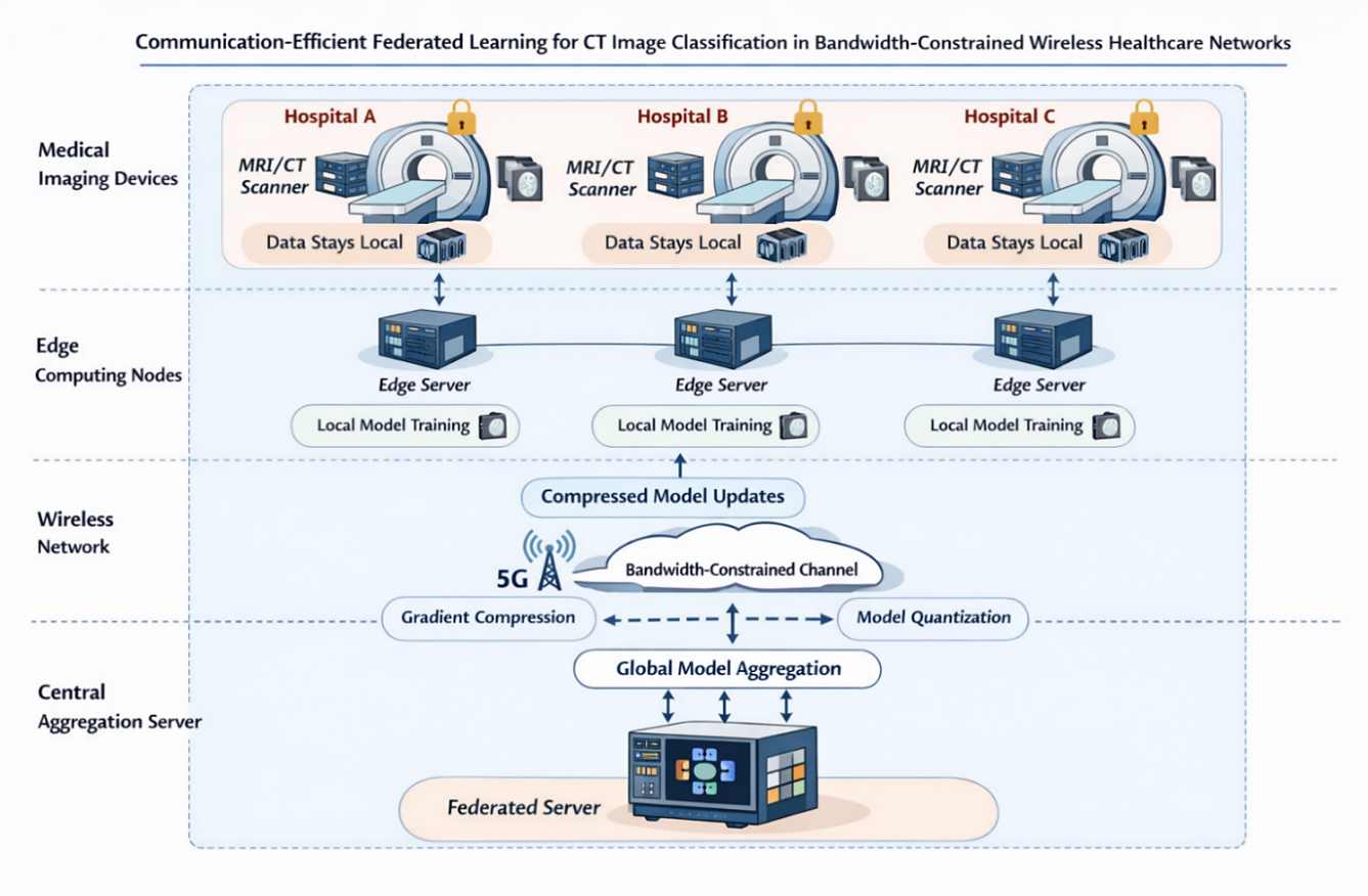 Federated Learning, CT Classification, Wireless Edge Computing, Gradient Compression, Privacy-Preserving AI, MedTech, Deep Learning, LIDC-IDRIAbstract